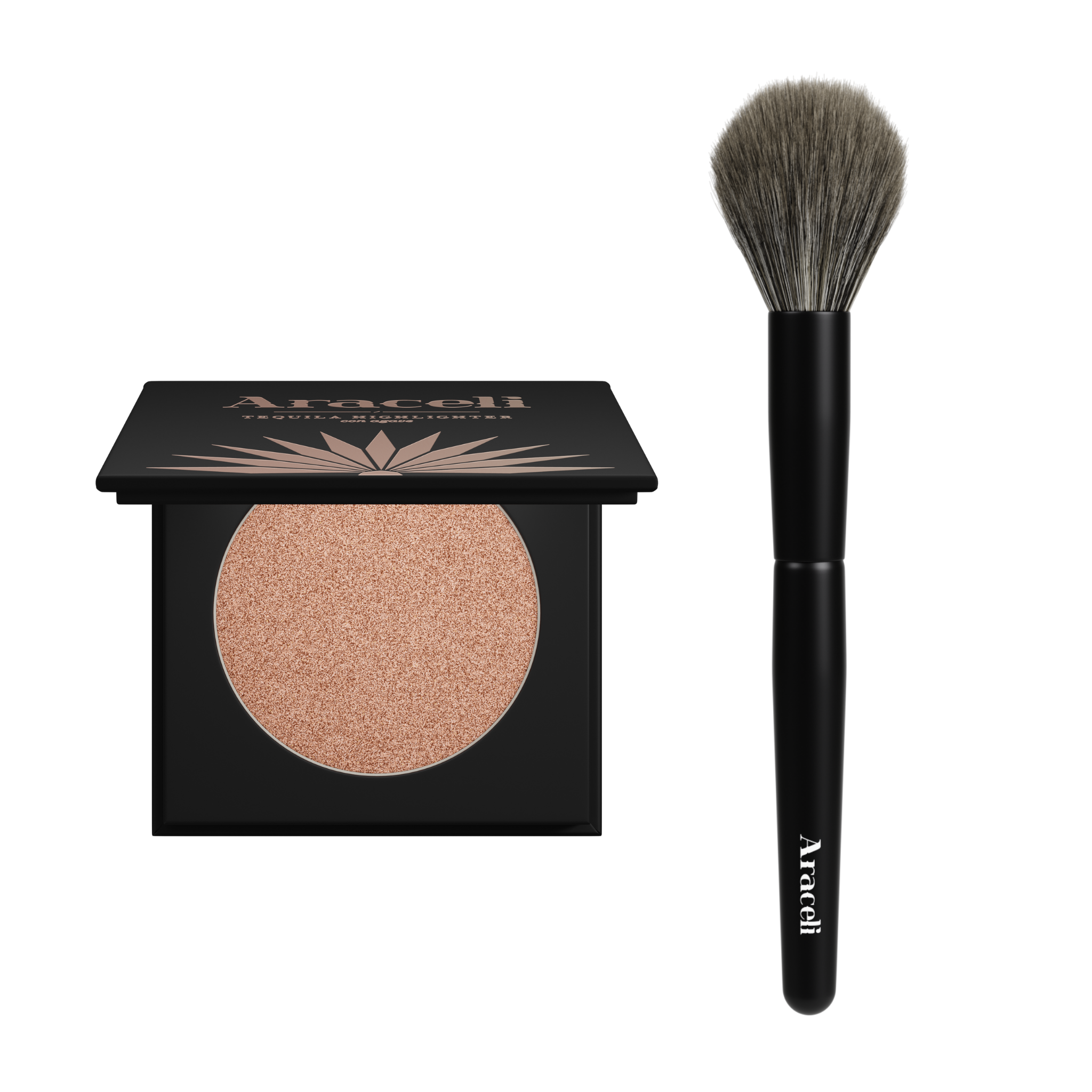 Elevate your beauty routine with Araceli Beauty's Blanco Tequila Highlighter Bundle, which includes the ultra-glowy and super buttery Tequila Highlighter along with the Grande Cheek Brush. This dynamic duo is your ticket to crafting a look that's both bold and elegant, allowing you to blend out cheek color, striking highlight, and radiant bronzer with precision and ease. Blanco, with its shimmery pink undertones, is designed to amplify the luminosity of your skin and enhance your natural radiance. And in alignment with Araceli Beauty's commitment to ethical beauty, this bundle is both vegan and cruelty-free. 🌟🌱